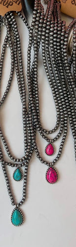 Multi Layered Necklace Navajo Bead Semi Stone Necklace