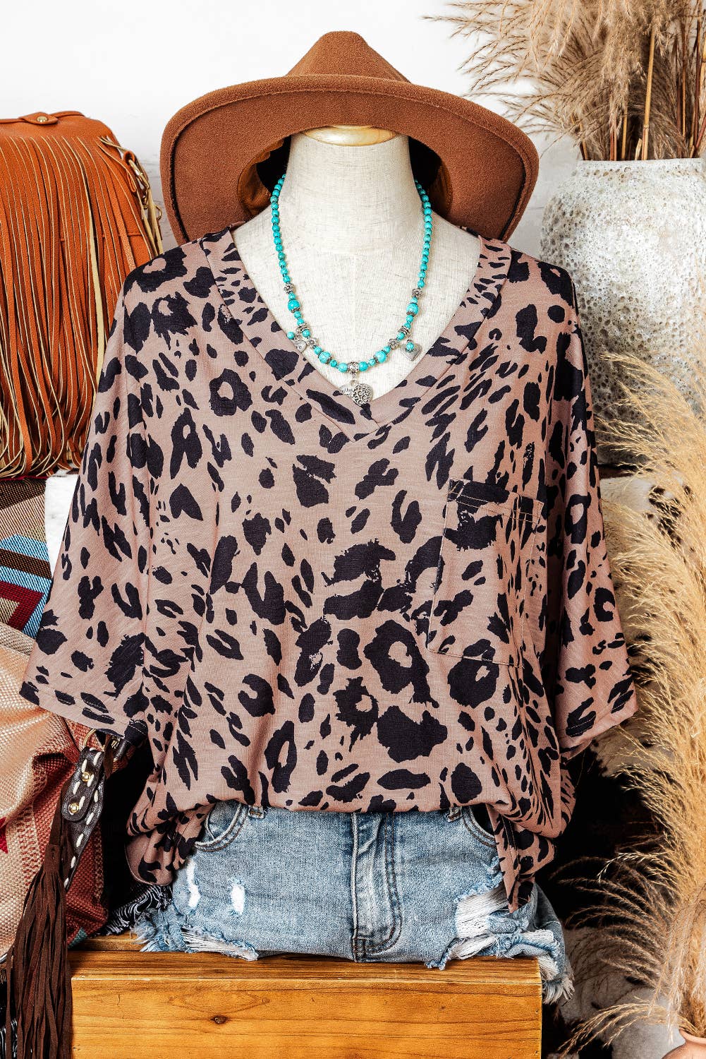 Add a wild twist to your wardrobe with this Western Leopard Print Oversized Tee. Featuring a bold leopard pattern and a relaxed fit, it’s perfect for effortless style and all-day comfort. Pair it with your favorite jeans or boots for a playful, standout look that’s ready for anything.